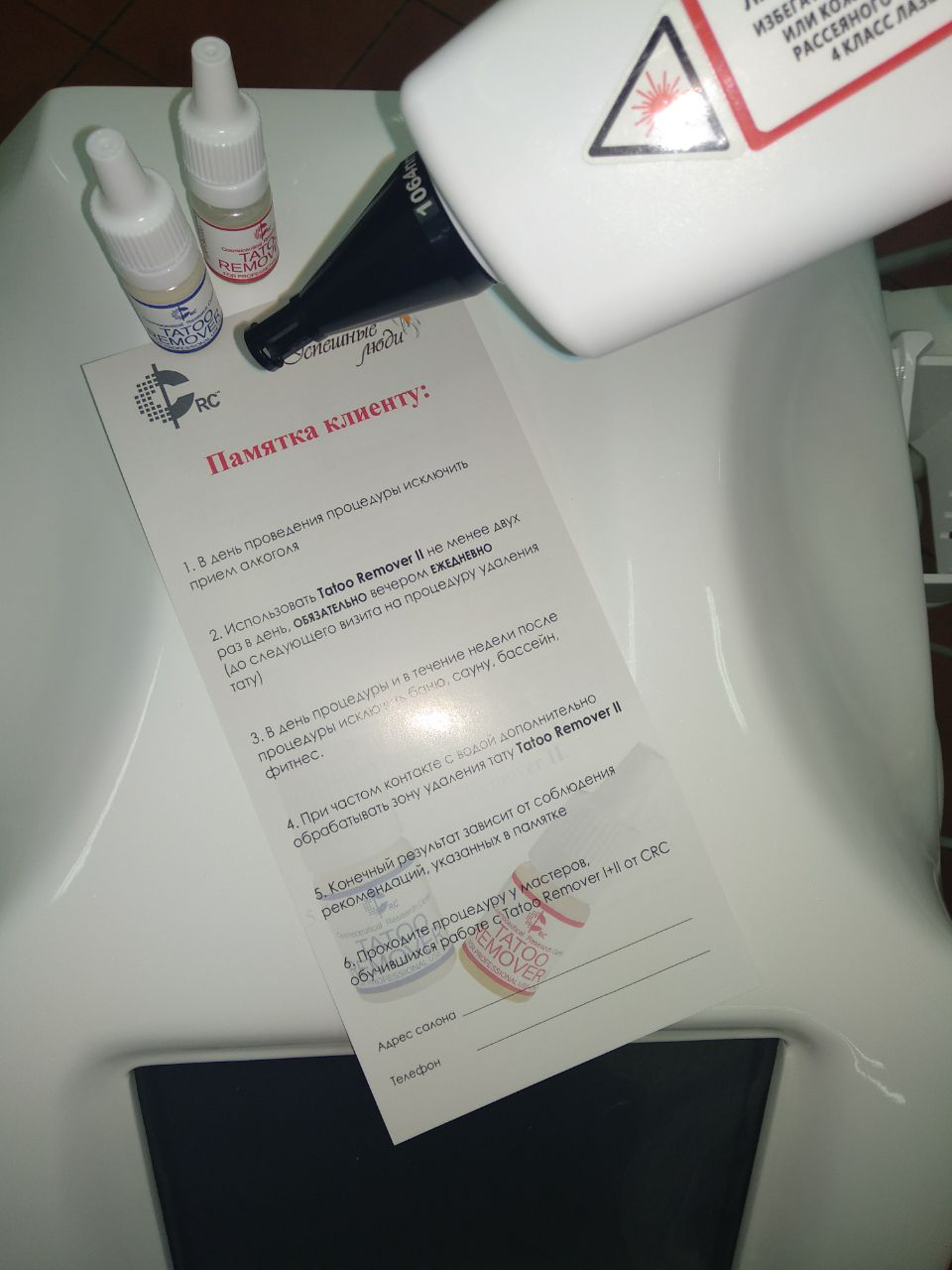 Today we own the most effective, low-traumatic and safe technique, because the properties of CRC Tatoo Remover I + II allow the remover to work independently in the skin
